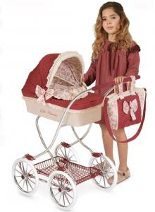 Характеристики:Комплектація: коляска, сумка, подушкаВікова категорія: від 3 роківМатеріал: метал, гума, текстиль, пластик.Розмір коробки: 15 х 38 х 56 см.Упаковка: картонна коробка.Розміри коляски: 90 х 80 х 45 см.Висота лялечки: від 30 до 45 см.Виробник: De cuevas Toys.Країна бренду: Іспанія (виробництво Китай)