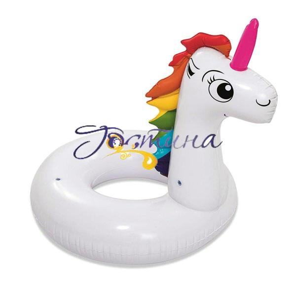 Коло для плавання Єдиноріг - гарний аксесуар для відпочинку в басейні чи на морі. Виріб виготовлений з високоякісного вінілу у формі єдинорога. Унікальний дизайн зробить час проведення у воді веселішим. Коло оснащене запобіжними клапанами та міцними ручками.