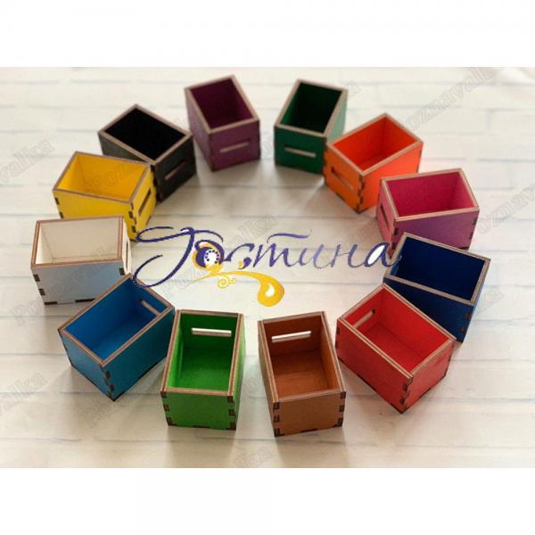 12 коробочок повністю прокопані акриловий сертифікованої фарбою, безпечної для діток.
