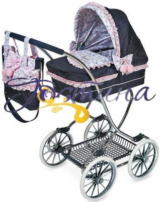 Чохол коляски двосторонній, тому дитина зможе змінити стиль виробу, просто прикривши люльку протилежною стороною текстильної підкладки. Капюшон захистить лялечку від сонячних променів. М'яка красива подушка всередині колиски зробить прогулянку для ляльки комфортною. Коляска оснащена кошиком, яка є частиною металевого каркаса. На поручні є спеціальна м'яка накладка.