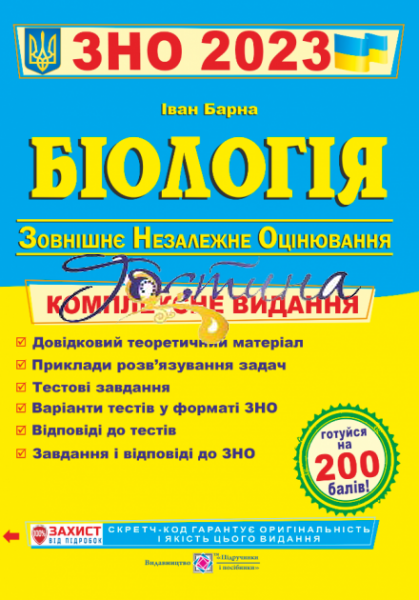 Пропонуємо Вашій увазі посібники для підготовки до зовнішнього незалежного оцінювання 2023р. Метою цього видання є індивідуальна підготовка учнів до ЗНО з предмету "Біологія". За допомогою книги учні зможуть підготуватися як самостійно вдома, так і в класі при допомозі вчителя. У посібнику подано довідковий теоретичний матеріал з шкільного курсу «Біологія» , а також подано після кожного розділу тестові завдання для перевірки набутих знань. Також, на сторінках нашого видання ви знайдете приклади розв'язування задач; варіанти тестів у форматі ЗНО; завдання і відповіді до ЗНО 2023; відповіді до тестів. Комплексне видання відповідає вимогам діючої програми "Біологія". для загальноосвітніх шкіл, а також відповідає вимогам програми «Зовнішнє незалежне оцінювання 2023р. з біології». Рекомендовано для учнів та вчителів старших класів, абітурієнтів.