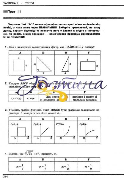 Видання укладено відповідно до нової програми ЗНО з математики і складається з двох частин. Частина I — довідник, який охоплює весь шкільний курс математики і містить матеріал як рівня стандарту, так і профільного рівня. До кожної тими наведено короткі підсумки і тренувальні вправи, а також відповіді до вправ. Частина II містить 18 тестів для підготовки до державної підсумкової атестації та зовнішнього незалежного оцінювання, а також короткий математичний довідник. Наведено бланки відповідей, розв'язків язання значної кількості завдань, докладні розв'язків язання завдань з повним розв'язків зобов'язанням, відповіді (бланк А).