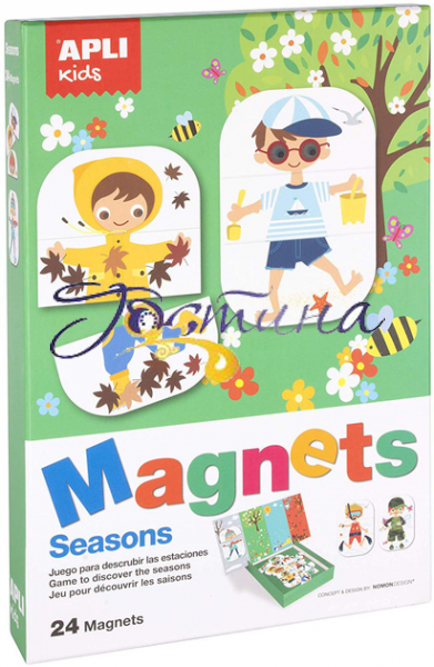 Магнітна гра Apli Kids ідеально підходить для дітей від 4 років. Ця гра допомагає пояснювати й навчати різні пори року, комбінуючи одяг на магнітній знімній подвійній опорі. У нижній частині коробки є виїмка, що дає змогу помістити туди магнітну опору. Гра розширює свідомість, стимулює роздуми та допомагає створювати нове. А ще гра — це планування, аналіз альтернатив, логіка.