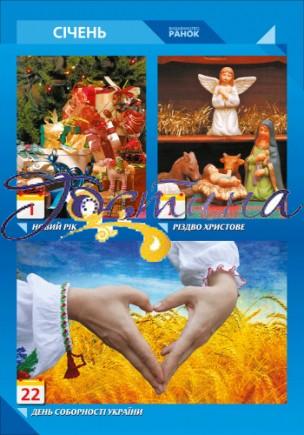 СіченьНОВИЙ РІКРІЗДВО ХРИСТОВЕДЕНЬ СОБОРНОСТІ УКРАЇНИЛютийДЕНЬ ГЕРОЇВ НЕБЕСНОЇ СОТНІМІЖНАРОДНИЙ ДЕНЬ РІДНОЇ МОВИБерезеньМІЖНАРОДНИЙ ЖІНОЧИЙ ДЕНЬШЕВЧЕНКІВСЬКІ ДНІКвітеньВСЕСВІТНІЙ ДЕНЬ АВІАЦІЇ ТА КОСМОНАВТИКИВСЕСВІТНІЙ ДЕНЬ ЗЕМЛІДЕНЬ ЧОРНОБИЛЬСЬКОЇ ТРАГЕДІЇТравеньДЕНЬ МІЖНАРОДНОЇ СОЛІДАРНОСТІ ТРУДЯЩИХДЕНЬ МАТЕРІДЕНЬ ПАМ'ЯТІ ТА ПРИМИРЕННЯДЕНЬ ПЕРЕМОГИ НАД НАЦИЗМОМ У ДРУГІЙ СВІТОВІЙ ВІЙНІЧервень, липень, серпеньДЕНЬ ЗАХИСТУ ДІТЕЙДЕНЬ КОНСТИТУЦІЇ УКРАЇНИДЕНЬ ДЕРЖАВНОГО ПРАПОРА УКРАЇНИДЕНЬ НЕЗАЛЕЖНОСТІ УКРАЇНИВересеньДЕНЬ ЗНАНЬДЕНЬ БАТЬКАВСЕУКРАЇНСЬКИЙ ДЕНЬ ДОШКІЛЛЯЖовтеньДЕНЬ ПРАЦІВНИКІВ ОСВІТИДЕНЬ ЗАХИСНИКА УКРАЇНИЛистопадДЕНЬ УКРАЇНСЬКОЇ ПИСЕМНОСТІ ТА МОВИДЕНЬ ГІДНОСТІ ТА СВОБОДИДЕНЬ ПАМ'ЯТІ ЖЕРТВ ГОЛОДОМОРІВГруденьДЕНЬ ЗБРОЙНИХ СИЛ УКРАЇНИДЕНЬ СВЯТИТЕЛЯ І ЧУДОТВОРЦЯ МИКОЛАЯ