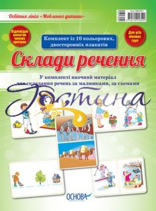 Комплект містить 10 кольорових двосторонніх плакатів. У комплекті наочний матеріал для складання речень за малюнками, за схемами.