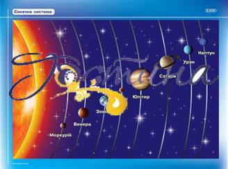 У комплекті:Сонячна системаМісяць - супутник планети Земляглобус - модель планети ЗемляСезонні зміниЗміна дня і ночіПилади для дослідження ВсесвітуСузір'яПерші космонавти