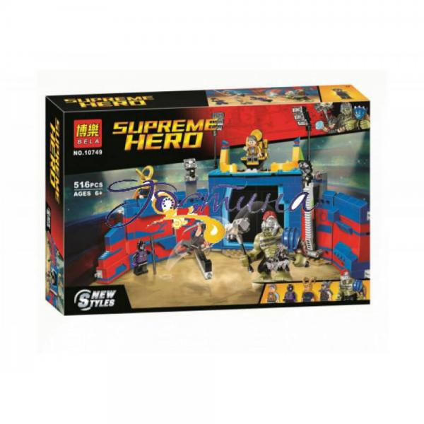 Підступна богиня Хела змогла перемогти Тора і зруйнувати його молот. Тор був узятий в полон і засланий на далеку планету Сакаар, де повинен був брати участь в найжорстокіших гладіаторських боях у Всесвіті. Його суперником став розлючений Халк, одягнений в обладунки. Але, битва вийшла зовсім не такою, як очікували глядачі. Замість того, щоб боротися один з одним, гладіатори об'єдналися і направили свій гнів проти Гросмейстера і Локі, що сидять на трибунах. З деталей набору Ви зможете зібрати відкриту арену для боїв з масивними чорними воротами, здатними розсуватися, пропускаючи гладіаторів на арену. Над воротами розташовується оглядовий майданчик з прожекторами і позолоченим троном, призначеним для Гросмейстера. Під час битви Тор може високо підстрибнути і зруйнувати трон своїм мечем.