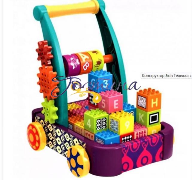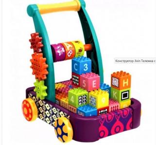 Конструктор з каталкою залучить вашу дитину до гри і навіть допоможе навчитися ходити. Кубики великого розміру виготовлені із пластику. На кубиках є літери, цифри та малюнки, тому дитина може навчатися під час гри.