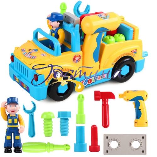 Дитяча музична машинка з інструментами 789. Барвиста машинка для маленьких дітей з різними інструментами, складеними в багажник. У наборі присутній: - Міні фігурка водія; - 3 в 1 (дриль, шуроповерт, гайковерт); - Гайковий ключ; - Викрутка; - Молоток; - Наконечники для Шуроповерти; - 3 шурупа, 6 болтів, 2 цвяха; - Кріпильна пластинка. Машинку можна возити на мотузочці. Шуроповерт працює від батарейок зі звуковими ефектами. До кожного інструменту в машинці є отвір, куди його потрібно вкрутити або прибити. З даними набором малюкові буде дуже цікаво, до того ж він навчиться розрізняти інструменти. А найголовніше, що така машинка не тільки цікава, але й корисна. Вона допоможе у розвитку дрібної моторики рук, координації рухів, вивченні квітів і предметів.