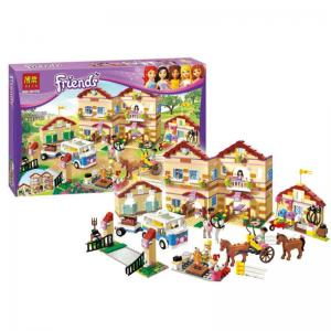 На час літніх канікул чотири подружки з набору Bela (аналог Лего) 3185 переїжджають в табір для наїзників. Це дуже затишний комплекс, в якому можна знайти все необхідне для комфортного проживання. Є дві спальні. Одна з них призначена для самих маленьких наїзниць і оснащена дворівневої ліжком, шафками для одягу та графином з водою. У другій спальні відпочивають дві подружки постарше. У них окремих ліжка і балкон з квітами. На першому поверсі розташувалася простора кухня з холодильником, столом і стільцями. Поруч завжди відкрито навчальний клас. У ньому проводяться теоретичні уроки з верхової їзди, а так же виставлені нагороди учениць. Туалет і душова розташовуються в сусідній будівлі. Так само в набір входять три конячки, загін, сарай з інвентарем і стійка для барбекю.