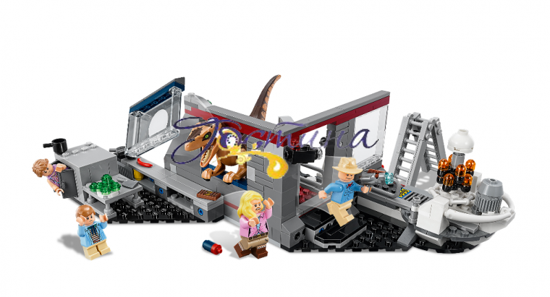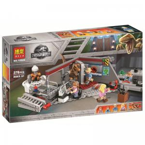 У наборі Юрський період "Полювання на Рапторів" головні персонажі стикаються з агресивними Велоцираптором. Незважаючи на надійний захист, одному Велоцираптору вдалося проникнути всередину приміщення. З деталей набору Ви зберете головний корпус Парку Юрського періоду, звідки відбувається управління всіма системами життєзабезпечення динозаврів і безпеки відвідувачів парку. У наборі Ви знайдете рухливу фігурку Велоцираптора, доладні сходи і 4 фігурки: Алан Грант, Еллі Сеттлер, Лекс і Тім Мерфі. Аксессуарів для гри: телефон, гайковий ключ, рація, парасольку, контейнер, ложка, ніж, сковорода, 2 сотейника, желе на підносі, шоколадка, сосиска, 8 ембріонів динозаврів, пістолет і капелюх.