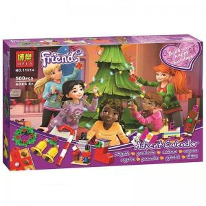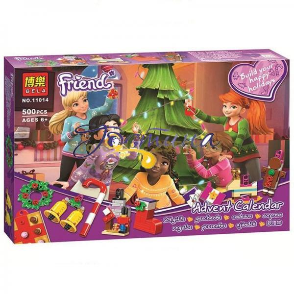 Конструктор Bela Friends Новорічний календар, Advent calendar, 11014 Збери разом з друзями яскравий і барвистий новорічний календар. Новорічний календар (Advent calendar) - традиційне зимове розвага, яка подобається дітям і дорослим. Набір складається з 500 деталей. Новорічна ялинка, різдвяний вінок, пряниковий будиночок, камін, сніжинка, 24 фігурки різдвяної тематики створять новорічний настрій і подарують відчуття свята. Іграшка розвиває фантазію, логічне мислення і дрібну моторику, розширює кругозір.