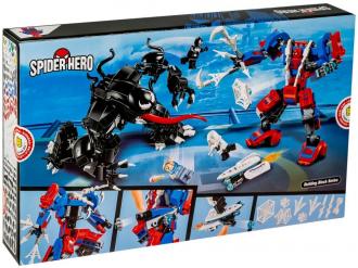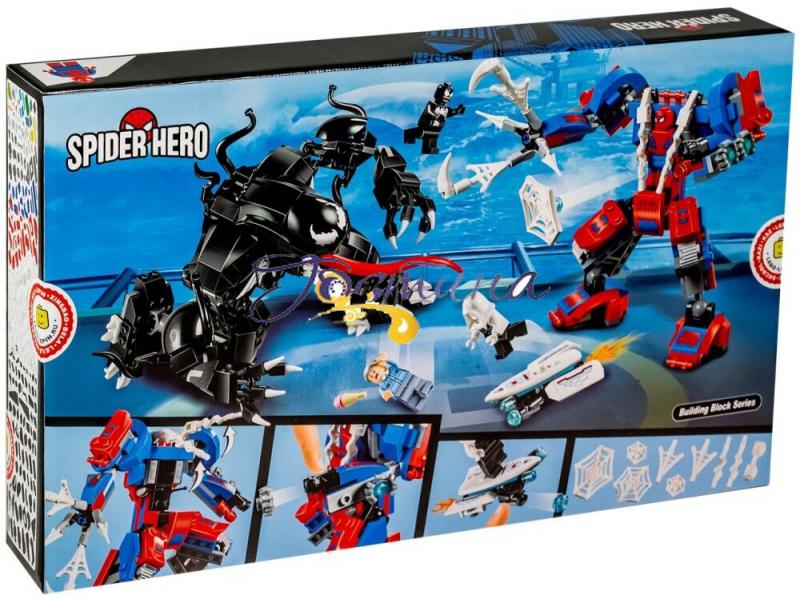 Бій у Всесвіті Марвел триває і сьогодні ми пірнемо в пригоди Спайдермена, де він бореться з прибульцем з іншої планети. Зібрати таку рольову сценку вийде завдяки конструктору Bela 11188 Людина-Павук проти Венома. Бій буде проходити на роботах, що тільки додасть яскравості при грі. За сюжетом набору, Веном захопив тітку Мей і Spiderman поспішає до неї на допомогу, крім цих персонажів присутній ще один - примарний павук. Ось власне складанням такого комплекту ми і пропонуємо зайнятися Вашій дитині.
