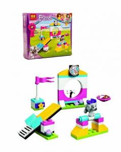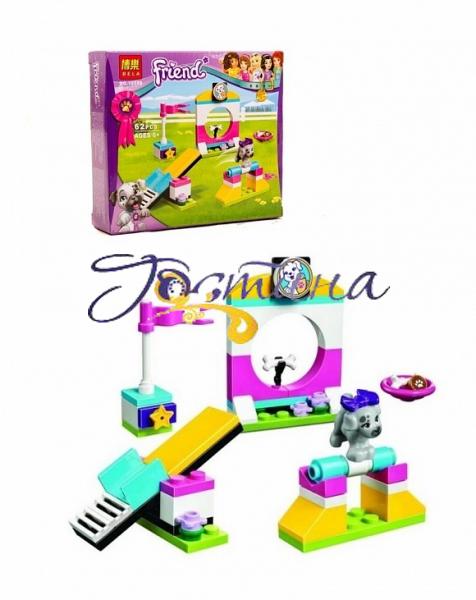 Маленький грайливий сірий щеня дуже любить гратися на свіжому повітрі і активно проводити час. У його розпорядженні невелика смуга перешкод, що включає в себе стартову позицію (вона ж - фініш), бар'єр, перекидається дошку, коло для стрибання крізь нього. Щеня дуже старається виконати всі вправи правильно і швидко, адже в кінці його чекає приз - миска смакоти! Комплектація: фігурка цуценя, різні декоративні деталі.