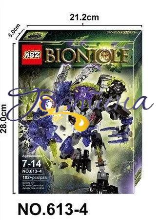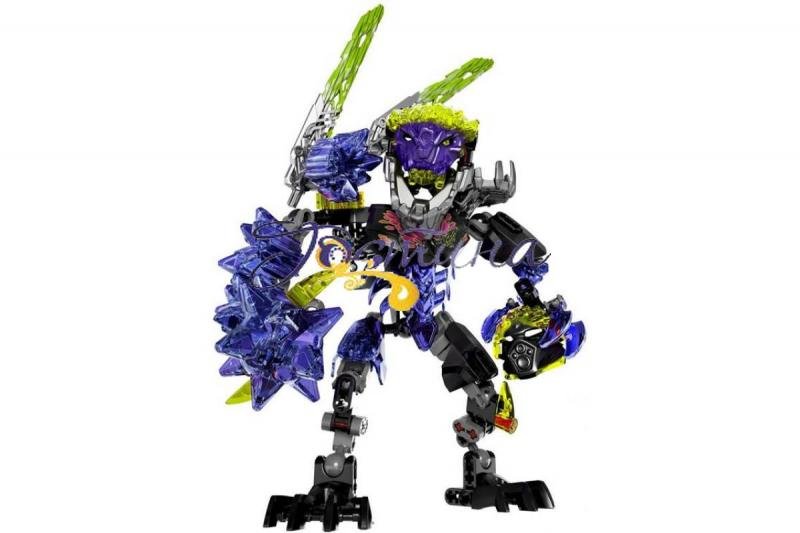 Велика рухома фігурка журиться чудовиська з набору 613-4 Bionicle Монстр землетрусів виконується в деталях фіолетово-чорної гами з додаванням жовто-зелених елементів.Конструкція цього монстра асиметрична і має дві поворотні шаблевидні клешні на правому плечі.Також в правій частині на прозоро-фіолетовою руці знаходиться булава з двома ножами-лопатями зеленого кольору.На лівому плечі знаходиться тіньова пастка, а ліва рука має чіпкі гострі кігті.За спиною у журиться чудовиська розташований спеціальний поворотний механізм.У набір входить чорна Маска Повелителя Землі Онуа, що має прозоро-зелену окантовку. Розмір в зібраному вигляді: 22 см.