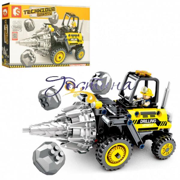 Захоплення конструктором здатне дарувати дитині радість гри і одночасно розвивати його уяву, творче мислення, моторику. Стіни печери вкриті золотом, але щоб дістатися туди, знадобиться величезна бурильна установка і злагоджена робота всіх рудокопів і техніки. Комплект складається з 235 пластикових елементів, з яких дитина збере важкий гірський бур.Кількість деталей: 235 шт. Іграшка розрахована на дітей від 6-ти років і старше.