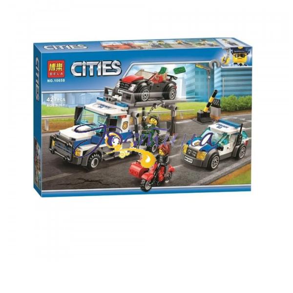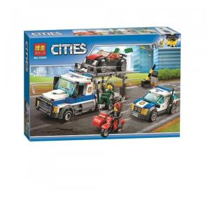 Конструктор Cities "Пограбування поліцейського транспортувальника" Lari (Bela) тематичний набір, що дозволяє зібрати поліцейський транспортувальник, поліцейський автомобіль, машину та мотоцикл грабіжників, а також стійку з ліхтарем та шлагбаумом. У комплект також включені ігрові аксесуари та міні фігурки. Конструктор Ларі (Біла) розвиває увагу та посидючість, дрібну моторику та просторове мислення, уяву та логіку. Набір сумісний із конструкторами Lego. Кількість деталей: 427 шт. Матеріал: пластик. Інструкція в коробці
