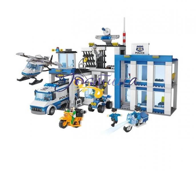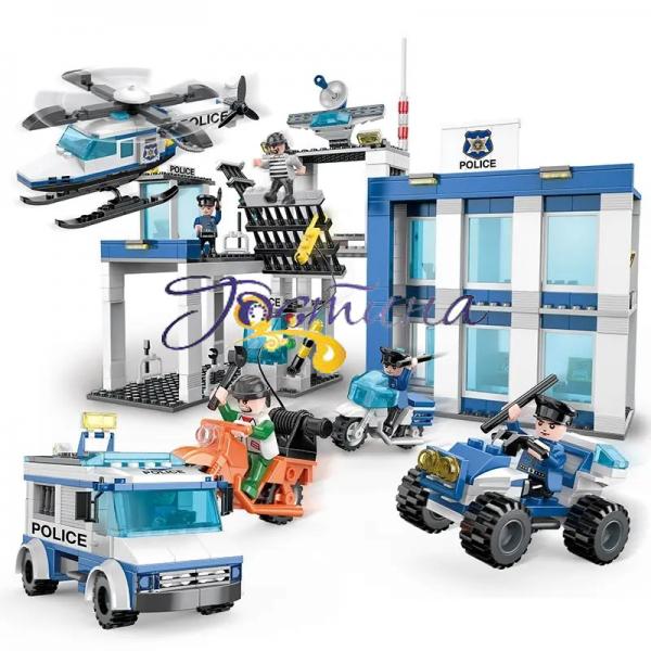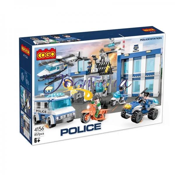 Конструктори Cogo серії Police створені спеціально для маленьких захисників порядку і справедливості. З набором Поліцейський відділок, арт. 4156 дитина зможе побудувати справжнє поліцейське управління з різноманітним транспортом і навіть камерами для злочинців. Витративши трохи часу і сил, із 857 блокових пластикових деталей можна скласти поліцейську техніку та будівлю дільниці. Управління - двоповерхове. Тут кабінети з великими вікнами, пропускний пункт, тюремні камери для злочинців і заїзди для техніки. Для підтримання правопорядку в розпорядженні поліцейських є великий фургон, мотоцикл, квадроцикл і вертоліт. Але й злочинці не "пасуть задніх". Ось один із них, на спеціально переобладнаному мотоциклі, намагається допомогти втекти своєму подільнику. Але браві поліцейські спритно перешкоджають цій спробі.
