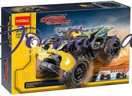 Конструктор Decool 3416 'Квадроцикл' збирається з 148 деталей. Він призначений для дітей у віці від 7 до 14 років. У модель вбудований інерційний двигун нового покоління, який забезпечує швидкий рух вперед. Набір входить безліч цікавих деталей з яскравими наклейками, які надають квадроциклу агресивний вид. Потужні колеса з глибоким протектором дозволяють йому долати серйозні перешкоди. Якщо з'єднати цей конструктор конструктором Decool 3415 'Рекордсмен' , то вийде приголомшливий позашляховик для екстремальних гонок. Конструктор Decool 3416 повністю сумісний з конструкторами інших марок, таких як: Sluban, Ausini, Bela, Lele, Lepin і Brick. Деталі добре скріплюються між собою. Конструктор упакований в яскраву коробку, деталі всередині запаяні в пакети. Інструкція по збірці також в комплекті.