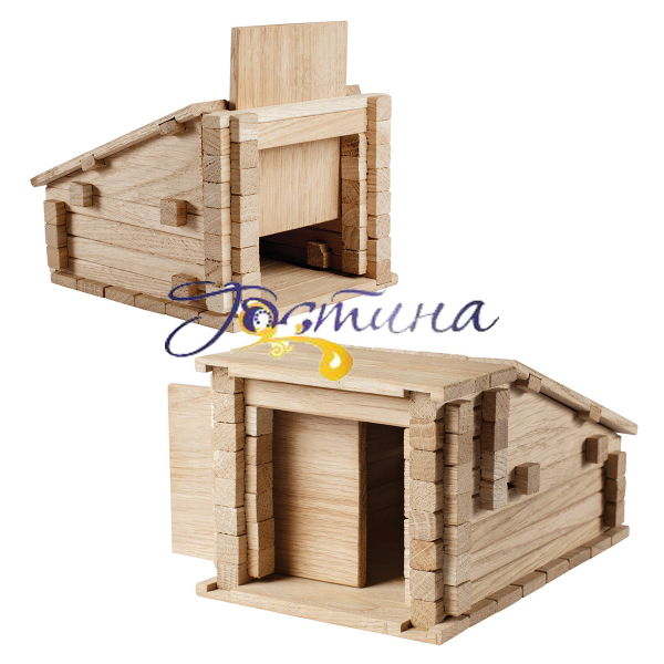 Конструювання дасть дитині розуміння основ будівництва помешкань зі зрубу - аутентичному українському методу зведення хат у Карпатах. 79 деталей у наборі. Бруси та півбруси мають пази для скріплення між собою. Січення брусів - квадратне. Найкоротша деталь - 24 мм. Найдовша - 180 мм.