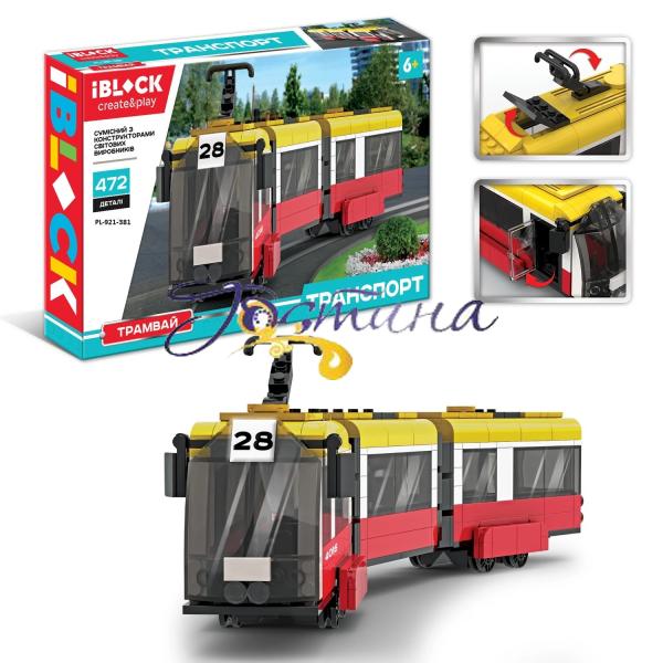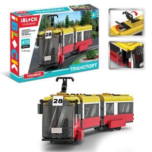 Конструктор IBLOCK ТРАНСПОРТ Трамвай №28 3-х секційний 472 деталі.