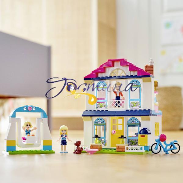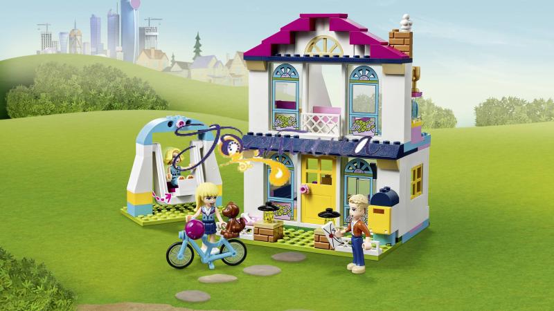 Знайомся з родиною Стефані та заходь до них у гості до затишного заміського будиночка. Усередині на першому поверсі розташована затишна вітальня, на другому поверсі кімната Стефані та ванна кімната. Після ситного обіду можна покататися на гойдалці, яка стоїть у дворі, покататися на велосипеді і пограти із кумедним цуценям У наборі: 170 деталей 3 мініфігурки 1 фігурка цуценя 2-х поверховий будинок гойдалки велосипед меблі та аксесуари для будинку вдома можна розміщувати меблі та аксесуари двері в будиночок відкривається в кімнатах можна розміщувати мініфігурки на рухомих гойдалках можна розміщувати мініфігурку на велосипед можна розмістити мініфігуркуЗнайомся з родиною Стефані та заходь до них у гості до затишного заміського будиночка. Усередині на першому поверсі розташована затишна вітальня, на другому поверсі кімната Стефані та ванна кімната. Після ситного обіду можна покататися на гойдалці, яка стоїть у дворі, покататися на велосипеді і пограти із кумедним цуценям У наборі: 170 деталей 3 мініфігурки 1 фігурка цуценя 2-х поверховий будинок гойдалки велосипед меблі та аксесуари для будинку вдома можна розміщувати меблі та аксесуари двері в будиночок відкривається в кімнатах можна розміщувати мініфігурки на рухомих гойдалках можна розміщувати мініфігурку на велосипед можна розмістити мініфігурку