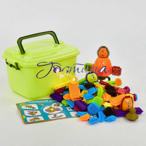 Голчатий конструктор із серії «Маленький Розумник» від Fun Game захопить навіть самого активного непосиду!Конструктор даного типу не тільки сприяє веселого проведення часу, але і відмінно впливає на розвиток малюка. По-перше, голчастий конструктор розвиває просторове і логічне мислення, розкриває творчий потенціал малюка. По-друге, незвичайні деталі конструктора з м'якими голочками тренують дрібну моторику рук і володіють масажним ефектом.Даний набір складається з 108 деталей, які просто кріпляться один до одного і легко роз'єднувати, що дає можливість дітям вже від 3 років впорається зі складанням. Для зручності зберігання, конструктор упакований в пластиковий контейнер з ручкою.