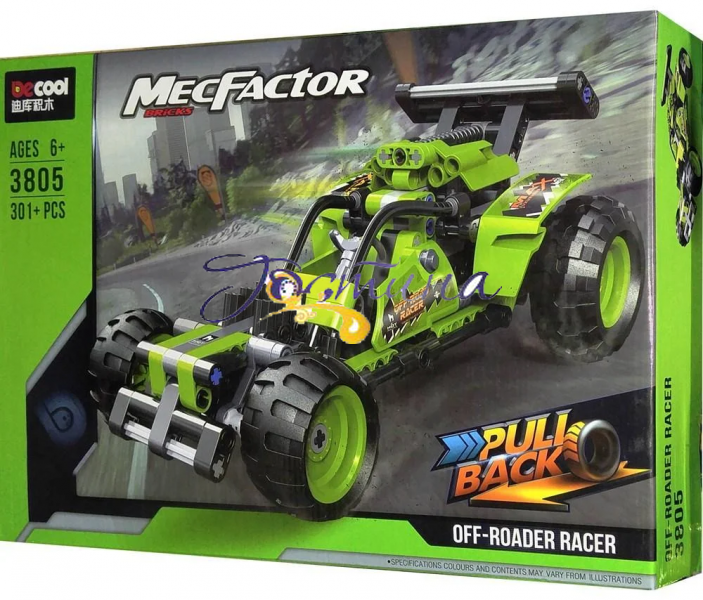 Конструктор DECOOL - авто для тих, хто цінує піщані заїзди і швидкість. Представлений набором на 301 деталь, він дозволить гравцеві влаштовувати перегони та претендувати на кубок переможця. Його корпус прикрашає виконана в єдиній стилістиці з дизайном авто аерографія. Ходова частина авто має вигляд заниженої підвіски. Спереду вона спирається на два близько розташованих, а ззаду - на два встановлених на відстані один від одного потужних колеса. У носовій частині збірної моделі конструктора знаходиться металевий захист. За нею розташовується рухова система. Високі чорні труби забезпечують високі швидкісні характеристики транспортного засобу. Центральне місце займає захищена металевим каркасом кабіна управління. У ній немає нічого зайвого - тільки штурвал і сидіння водія. У задній частині швидкісного транспорту розміщується високий прямокутний спойлер, що підвищує аеродинаміку авто і дозволяє йому швидко розганятися під час гоночного заїзду. Конструктор повністю сумісний з конструкторами інших марок, таких, як LEGO, Sluban, Ausini, Bela і Brick. Деталі добре скріплюються між собою. Конструктор упакований в яскраву коробку, деталі всередині запаяні в пакети. Інструкція по збірці також в комплекті
