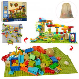 - Набір з 126 деталей - з них можна зібрати трек з шестернями і фігурками.
