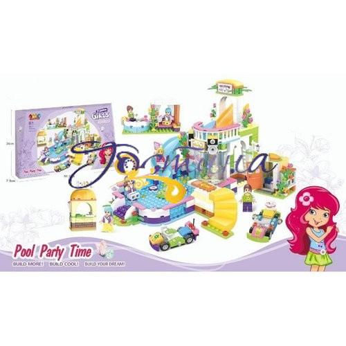 Тематика - аквапарк; Серія - Fashion girl; Кількість деталей - 768; Тип кріплення - пазовий; Розмір деталей - стандарт; Мінімальний вік - 6 років; Герої в наборі - подружки. ⠀ Конструктор JDLT 9518 від Fashion girl - "Аквапарк" У наборі 768 деталей з яких дитина зможе зібрати двоповерхову будівлю аквапарку в оточенні пальм і квітів. Відвідувачі цього розважального комплексу скочуються з гірки прямо в великий басейн, який займає майже весь периметр закладу. Після стрибків у воду можна зайти в кав'ярню і випити смачних напоїв. У комплекті з конструктором йдуть додаткові аксесуари