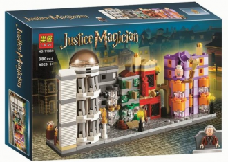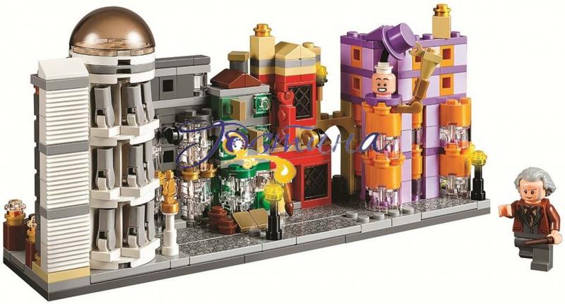 Косий Провулок в мікромасштабі в наборі Lego 40289 HarryPotterDIAGONALLEY, що складається з понад 350 деталей, з яких Ви зможете зібрати модельку Косого Провулка з п'ятьма знаменитими спорудами: Чарівний банк «Гринготтс», «Лавка Олівандера», «Флориш і Блоттс», «Усе для квідичу» і «Всілякі чарівні вредилки», а між останніми двома будинками видніється прохід в Лютный провулок.