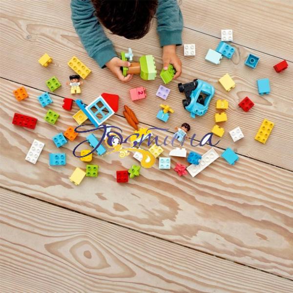 У цьому барвистому наборі кубиків LEGO DUPLO на вас чекає світ творчих і розвивальних ігор. У цьому універсальному наборі безліч ідей для малюків. У ньому є автомобіль із колесами, що обертаються, дах, вікна, квіти, хліб... усе це можна поєднати з безліччю кубиків і деталей та поринути у творчу гру. А кубики з 1, 2 й 3 допоможуть познайомити дітей із цифрами.