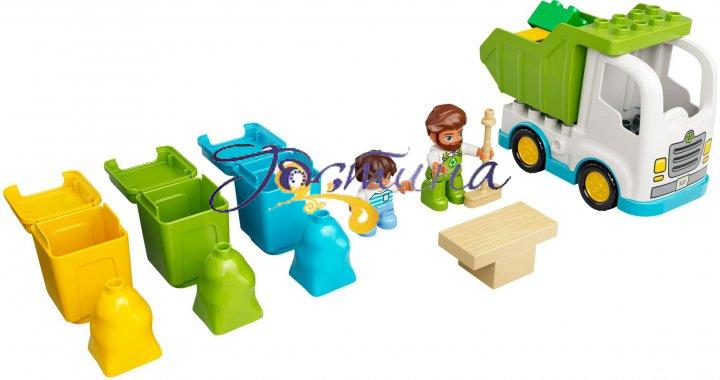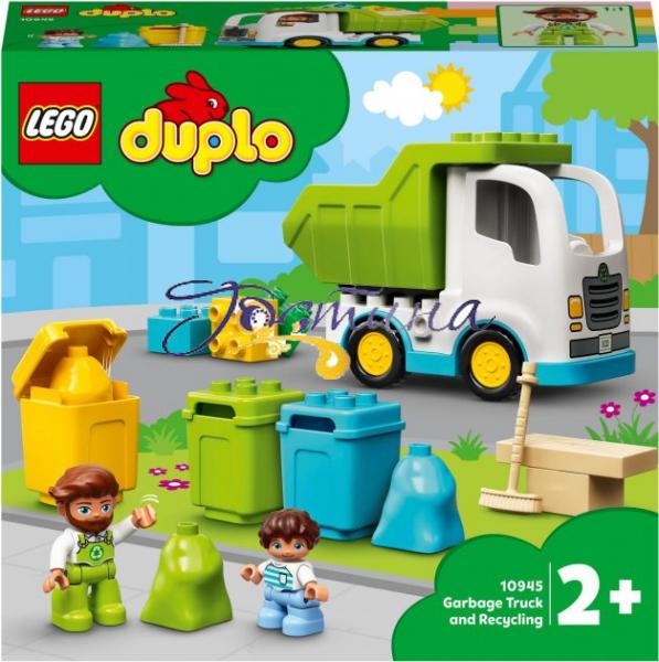 Конструктор LEGO DUPLO Сміттєвоз та сміттєпереробка (10945) — це яскравий і універсальний ігровий набір, який наповнений функціями для формування нових навичок у дітей під час гри і конструювання. Сортування сміття зараз актуальне як ніколи, ось і компанія LEGO підтримує світову ініціативу, створюючи нові набори в відповідній тематиці. Навіщо сортувати сміття? Невідсортоване сміття не піддається переробці і зберігається на звалищі, тим самим чинить дуже сильну шкоду нашій планеті, проникає в грунт, забруднює воду, моря і океани, шкодить тваринам і птахам, знищує всю екосистему. Інша справа відсортовані відходи: з них на спеціальних заводах, після переробки, можна виготовити нові речі або навіть перетворити їх в енергію. Таким чином на нашій планеті стане менше звалищ і стануть чистішими земля, вода і повітря. Допоможіть своїй дитині зрозуміти важливість сортування сміття разом з LEGO. Про набір У набір входить дві мініфігурки: юного хлопчиська і чоловіка, який приїхав на великій вантажівці-самоскиді спеціально, щоб забрати відсортоване сміття. Чоловік одягнений в зелений комбінезон із спеціальним круглим значком, а цей символ означає переробку. І він готовий відповісти на всі питання хлопчика, який приніс пакет жовтого кольору, наприклад, в який контейнер необхідно його розмістити? Сьогодні вантажівка відвезе на спеціальний завод пластик, потім скло і органічні відходи. Перш ніж вирушати в дорогу, потрібно зібрати залишки сміття за допомогою великої мітли. Не забудьте вигадати головним героям набору цікаві імена. Ігровий набір LEGO DUPLO Сміттєвоз та сміттєпереробка (10945) можна комбінувати з іншими наборами LEGO DUPLO. Об'єднуйте ваші набори з наборами ваших друзів, розкажіть їм про важливість сортування сміття і грайте разом, пізнаючи кожен раз щось нове. Малюків від двох років можна навчати новим знанням, а також пояснити важливі екологічні моменти в процесі гри. З набором LEGO DUPLO Сміттєвоз та сміттєпереробка (10945) ви зможете: вивчити кольори, в наборі представлені жовтий, блакитний, зелений, білий колір; навчитися сортувати — розташуовувати різнокольорові пакети зі сміттям у відповідні контейнери; розвивати дрібну моторику рук відкриваючи й закриваючи ящики, завантажуючи і вивантажуючи кубики в кузов самоскида; розширити уяву малюка нескінченними новими сюжетними лініями в процесі гри; виробити розуміння важливості екології та завести екологічну звичку — сортувати сміття, яка збережеться на все життя. Як в реальному житті Уявімо, що в жовтий контейнер ми складаємо відсортоване скло (скляні банки, пляшки), синій для непотрібного і використаного пластика (полетіленное пакети, одноразовий посуд), а зелений для органічних відходів (залишки їжі). Все по справжньому, як в реальному житті. Тепер необхідно: жовтий пакет помістити в жовтий контейнер, щоб скло вирушило на скляний завод для утилізації і створення нової скляної продукції; синій пакет покласти в синій контейнер для переробки зібраного пластику в корисний і необхідний продукт, наприклад канцелярські товари, вони адже всім необхідні, правда!?; зелений відповідно зеленому контейнеру, де зібрані органічні відходи, їх піддають компосту і використовують як добриво. Що в коробці? 19 деталей, 2 мініфігурки, інструкція по збірці з ілюстраціями.