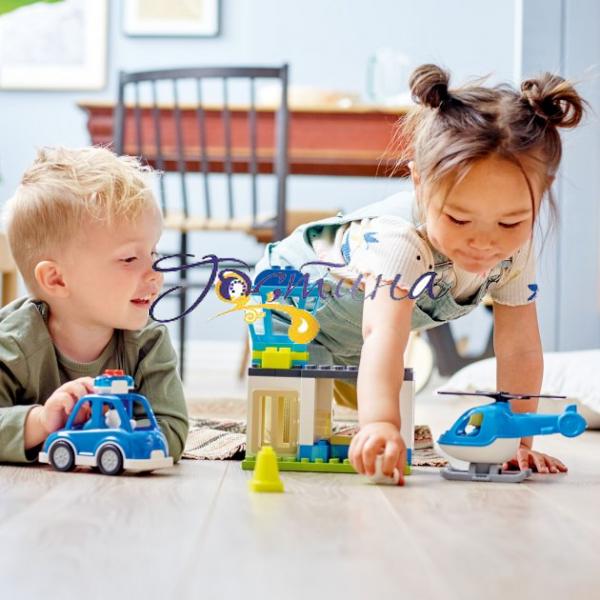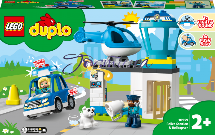 LEGO DUPLO Поліцейський відділок і гелікоптер (10959) — це чудовий ігровий набір із цікавими персонажами та засобами пересування для малюків від 2 років.