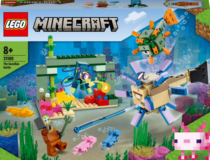 Беріть свій водолазний костюм, стрибайте в океан Minecraft та побудуйте підводний монумент. У кораловому рифі сховані скарби, але коли повз пропливають страж і старший страж, вам доведеться використати свій тризуб і трьох приручених аксолотлів, щоб відбитися від ворожих мобів. Старший страж клацає хвостом, щоб вистрілити лазерною ракетою. Чи зможете ви досліджувати монумент, чи вартові встигнуть дістатися до вас?