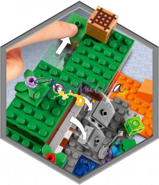 Цей багатогранний набір LEGO Minecraft розміром трохи понад 14 см заввишки, 19 см завдовжки й 12 см завширшки спеціально створений для нескінченних творчих ігор. Його можна об'єднати з іншими наборами LEGO Minecraft.