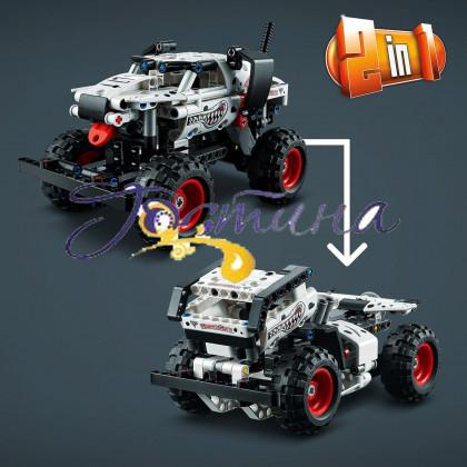 Готові до веселих розваг на арені Monster Jam? Ось і набір LEGO Technic Monster Mutt Dalmatian, щоб позмагатися — і цей лютий цуцик налаштований серйозно! Тож перевірте свої навички. З допомогою інерційного двигуна відправте вантажівку на перегони, а потім продемонструйте круті трюки і фігури вищого пілотажу. Коли настане час для чогось нового, перебудуйте його в автомобіль для перегонів.