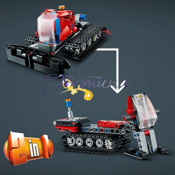 Давайте приведемо схили в ідеальний стан з допомогою цього конструктора LEGO Technic Ратрак. Завдяки гумовим шинам і гусеницям ця снігоочисна машина легко пересувається трасами, щоб зрушити або розрівняти сніг. Використовуйте рукоятку, щоб підіймати, опускати й повертати передню лопату. Інша рукоятка підіймає і опускає задній відвал. Коли ви будете готові спробувати щось нове, перебудуйте модель два в одному в крутий снігохід.