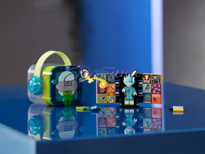 Станьте режисером, продюсером і зіркою власних музичних кліпів із набором LEGO VIDIYO Alien DJ BeatBox (Бітбокс Діджея Прибульця) (43104). Використовуйте застосунок, щоб оживити інопланетного діджея в приголомшливому музичному кліпі з позаземними вібраціями, а потім поділитися ним онлайн. Спробуйте різні ефекти — наприклад, світні жезли, за якими залишаються сліди світла, коли ними розмахує ваш персонаж. Готові вирушити в турне? Чудово! BeatBox складається, тож ви можете взяти іграшку із собою.