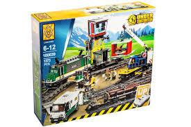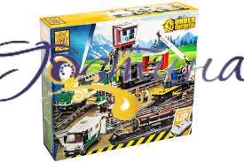 3 вагони і локомотив.gогрузчік.bнкассаторская машина.lіспетчерская вишка.hельси з переїздом і тупиком, елементами для зміни руху поїзда.gульт ДУ.fксессуари: прапорці, кружка, бінокль.6 мініфігурок: диспетчер, крановщица, водій навантажувача, машиніст, офіцер охорони, злодюжка.Характеристики: кількість деталей: 1226країна виробника: Китайвиробник: Lion Kingрекомендується для: Хлопчиквік (від): 6 +матеріал: пластик