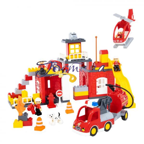Конструктор «Пожежна станція» (POLESIE 77493) - створений для дітей, які хочуть відчути себе учасником дій підрозділів, що забезпечують безпеку в місті - поліцейських, пожежників і т.д. Дозволить побудувати повністю функціональну модель пожежної станції. З гаражем, двоповерховим головним корпусом, диспетчерським пунктом, кімнатою відпочинку зі спеціальним спуском для пожежних. І все це з відповідним обладнанням - пожежною машиною з водяним баком і шлангом, вертольотом і спеціальним обладнанням. Модель сучасного пожежного автомобіля з приладдям має поворотні колеса. Яскраві деталі конструктора викличуть інтерес у маленького будівельника. Для збірки не вимагає інструментів або клею, по інструкції, що додається необхідно з'єднати між собою 95 елементів конструкції. Крім того в комплекті йдуть фігурки пожежних. Матеріал - пластик, пофарбований зносостійкими фарбами, всі деталі мають форму безпечну для малюка. Ця дуже реалістична, велика модель ідеально підходить в якості подарунка. Дозволить розвинути творчі здібності, моторику пальчиків і розіграти багато ігрових сценаріїв.