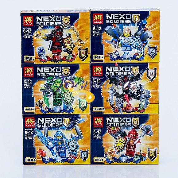Конструктор "NN" 79243 - це набір з 6 героїв серіалу NEXO KNIGHTS на платформі: Клей, Мейсі, Аарон, Робін, Приборкувач, лавар.