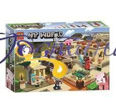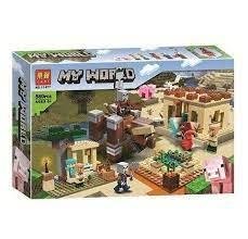 Конструктор Minecraft 11477 "Патруль розбійників" Розбійники з капітаном на чолі готові громити все навколо. Разом з ними Месник і руйнівний, який широко розкриває пасть.Стоіт триматися від нього подалі! Чи зможеш ти врятувати жителів села, захистити від руйнування їх будинку і посіви? Цей конструктор у вигляді ігрового майданчика, умовно розділяється на три функціональні зони. Зліва на ній стоїть одноповерховий бежево-коричневий будиночок. Усередині розташовуються ліжко, тумбочка і скриню з артефактами Кая. Поруч з будинком розбитий невеличкий город. На одній грядці росте пшениця і морква, на інший - гарбуз і буряк. Між грядками розташовується невелика водойма для поливу овочевих культур. На протилежному боці села в наборі "Патруль розбійників" знаходиться лавка з товарами на продаж. Тут можна придбати і овочі, і рибу, і інвентар для полювання і рибальства. Але, вирішивши відправитися за покупками, треба бути обережним.