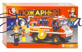 Всього в наборі 133 деталі, з яких можна зібрати пожежну машину і фігурку пожежного.Розмір машини: довжина 12,5 см, висота 7,5 см.