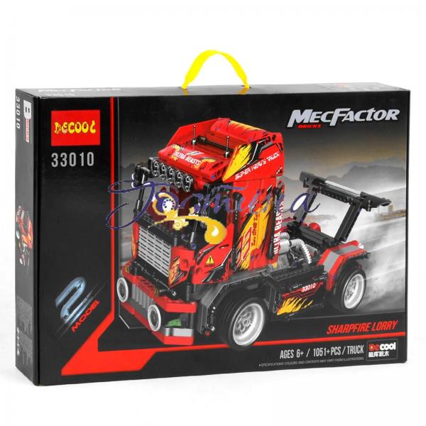 У комплектацію включили 1051 деталь виконану з високоміцної первинної пластмаси завдяки яким дитина зможе зібрати: спортивний тягач або чудовий споткар скориставшись QR-кодом в інструкції.