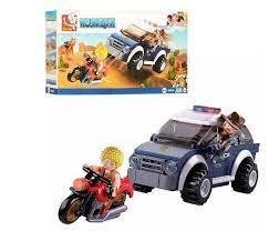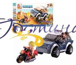У набір входить: машина, мотоцикл, фігурки.