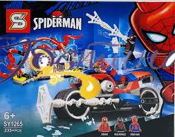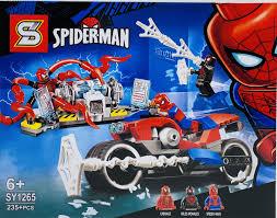 Конструктор типу лего людина павук проти людини-восьминога на 235 деталей, SY1265Конструктор типу лего продовжує серію, де Людина павук (спайдермен) бореться зі злодіями. На цей раз йому протистоїть Отто Октавіус - людина-восьминіг. Унікальна в своєму роді серія конструкторів, що дозволяє дитині розширити всесвіт Супер героїв своїми руками. конструктор складається з 235 деталей. І дозволяє відтворити деталі нелегкої битви.