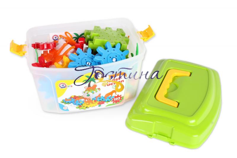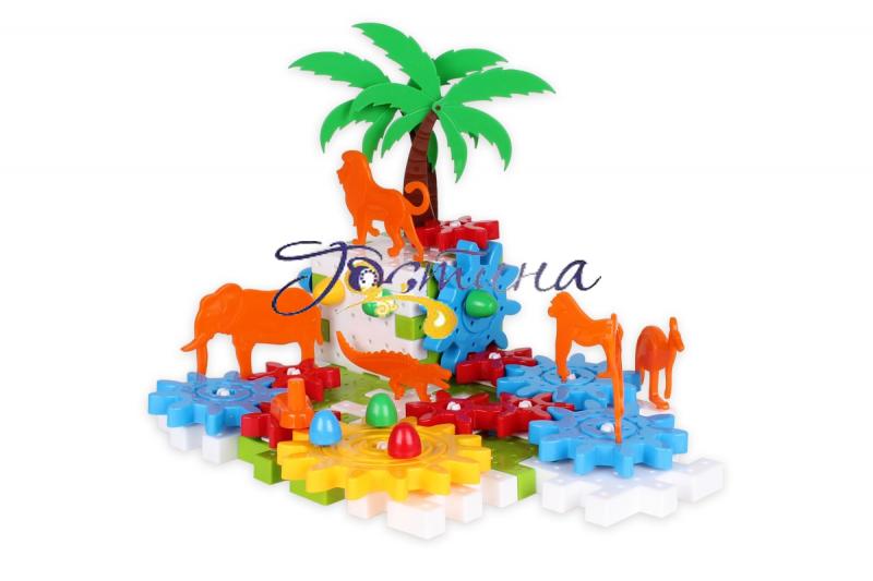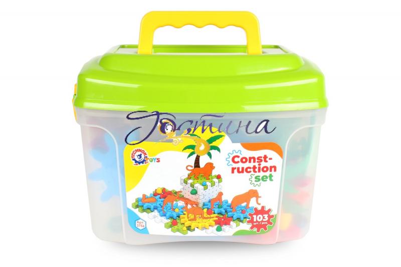 устрічайте конструктор «ТехноК», яким гратися так само цікаво як і складати його! Іграшка налічує 103 деталі: пластмасові шестерні, пластини-пазли, фігурки звірів і дерев, багато інших оригінальних елементів. Правильно зібраний конструктор перетворюється на захопливу конструкцію: різнобарвні шестерні, що рухаються, іграшкові мешканці джунглів і тропічні рослини з пластмаси… З цією іграшкою діти уявлятимуть себе досвідченими мандрівниками, які потрапляють в екзотичні місця та пригоди.   Важливо, що під час, гри малюки здобудуть багато важливих знань і навичок. Конструктор «ТехноК» знайомить дітей із фауною та флорою, із законами фізики й механіки, розвиває логічне мислення, дрібну моторику, уяву.   Іграшка виготовлена з міцних та якісних матеріалів, без запаху та шкідливих складників.
