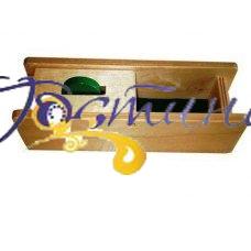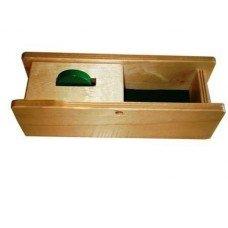Невелика дерев'яна коробочка, розділена на два відділення, з перекидний кришкою з прорізом для «монетки», що закриває одне відділення. Малюк вкладає диск ребром в отвір, відкриває дверцята, дістає диск з відділення коробочки, закриває дверцята і повторює все знову. Робота з матеріалом сприяє розумінню причинно-наслідкових зв'язків, розвитку дрібної моторики, допомагає освоїти пінцетний (великим і вказівним пальцем) і щипковий (великим, середнім і вказівним пальцем) захоплення, дає дитині можливість працювати правою і лівою рукою. Один з найулюбленіших матеріалів малюків, адже саме у віці від півроку до 2-х років дітям дуже подобається розкладати різні предмети по ємностей і коробочках і вправлятися в відкриванні дверцят. Деталі іграшки ретельно відшліфовані і оброблені. У комплекті: коробочка і монети (3шт- 2шт пофарбовані, рожеві; 1шт неокрашена)