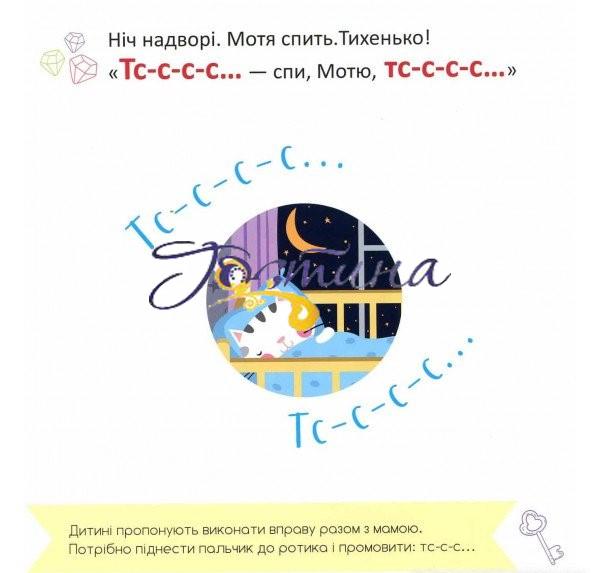 Яскраві ілюстрації та легкі тексти перетворюють заняття на гру. Повторюючи спочатку звуки, а потім слова і навіть речення, дитина вчиться володіти своїм голосом та інтонацією, покращує вимову, розширює словниковий запас. Поради батькам допоможуть урізноманітнити читання різними завданнями, іграми. Вправи не дозволять діточкам нудьгувати і сприятимуть покращенню вимови малюків.